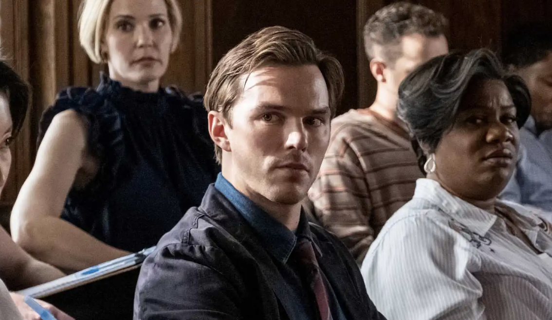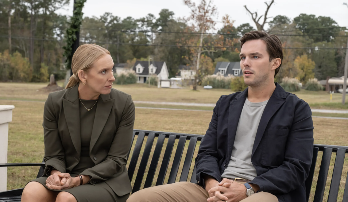 Toni Collette’s prosecutor, Faith, and Nicholas Hoult’s juror #2, Justin, are set up as two conflicted souls haunted by conscience.